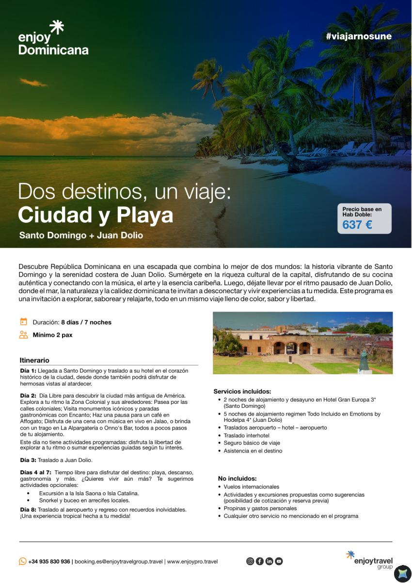 Dos destinos, un viaje: Ciudad y Playa en Santo Domingo y Juan Dolio desde 637€